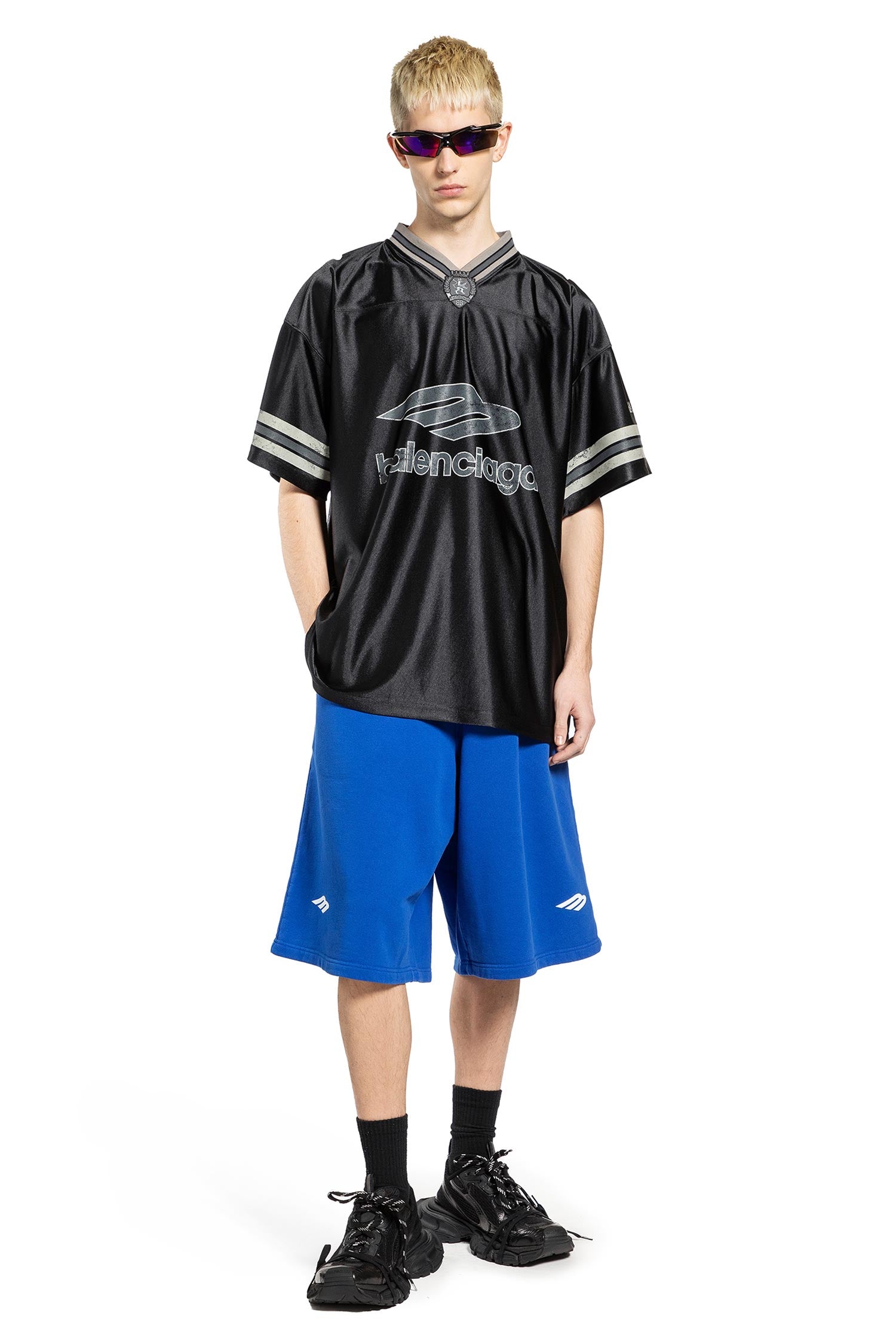 The Balenciaga 3B Football V-Neck T-Shirt channels the brand's bold fusion of sportswear and high-fashion attitude. Graphic prints and signature details reflect Balenciaga's edgy, street-driven identity.