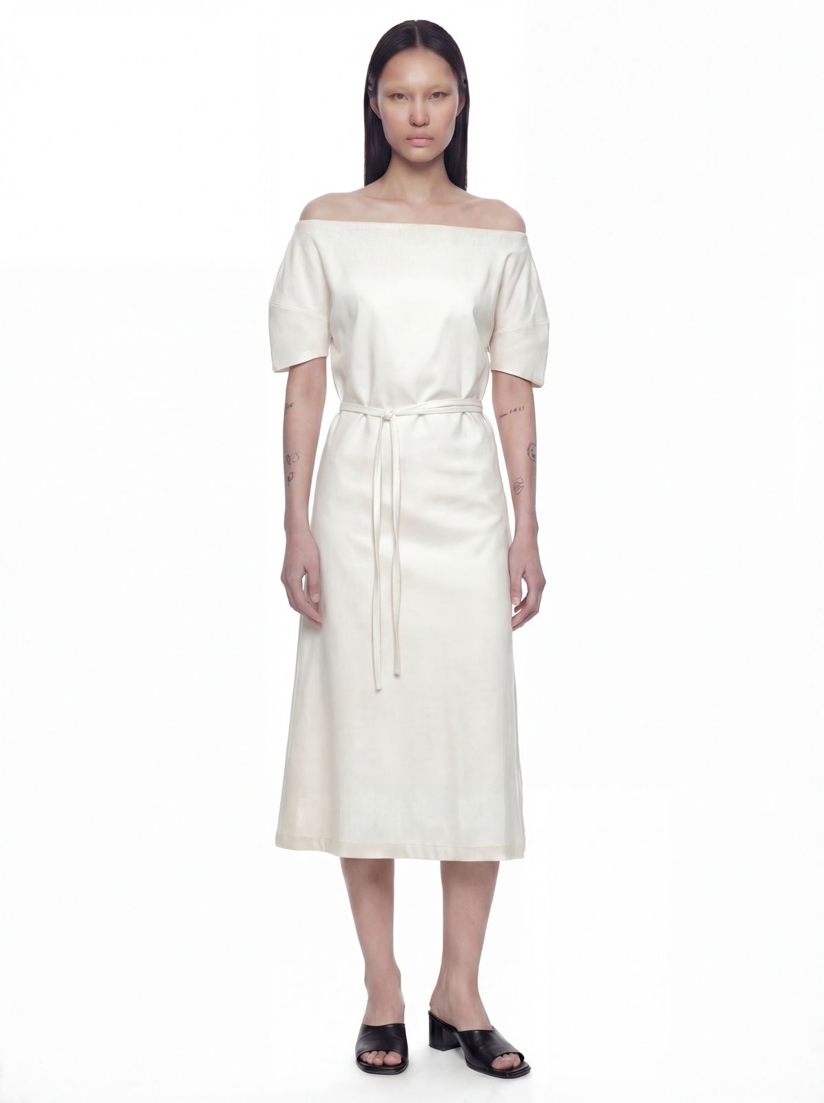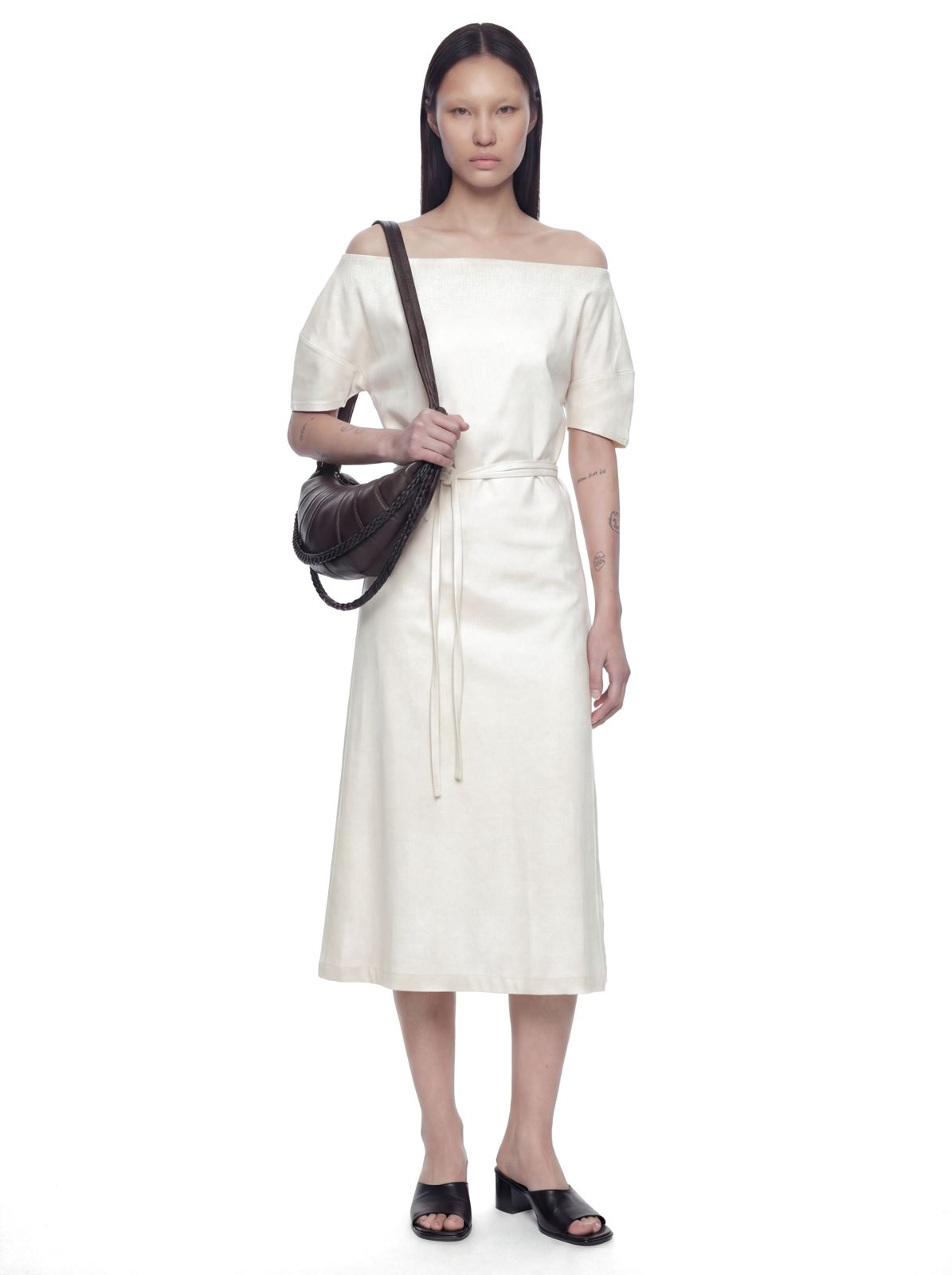 Understated elegance, effortlessly modern. This dress balances refined simplicity with subtle intrigue, letting delicate details and relaxed structure define its quiet sophistication.