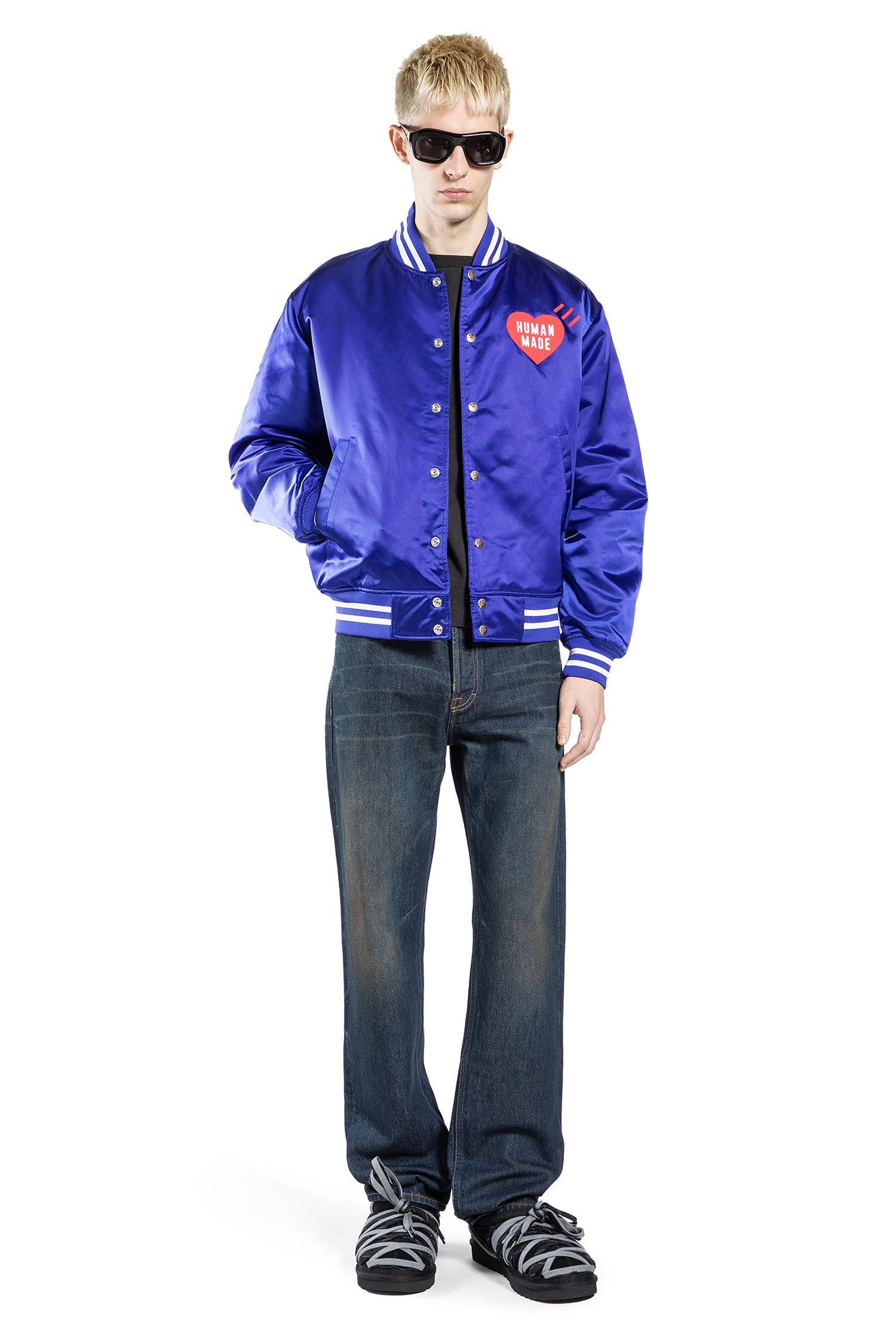 The Human Made Nylon Stadium Jacket reflects the brand's fusion of retro sportswear and playful, graphic storytelling. Its boxy silhouette and signature detailing embody Human Made's nostalgic yet contemporary streetwear identity.