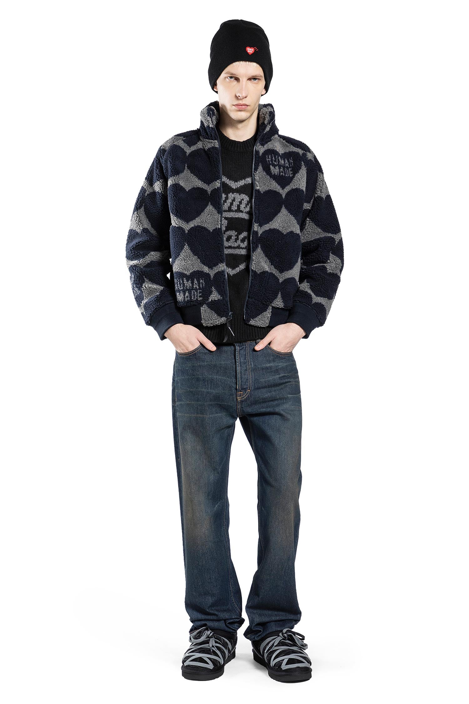 The Human Made Heart Fleece Jacket reflects the brand's focus on signature motifs and thoughtful construction. It embodies Human Made's modern approach to casual, graphic-led design.