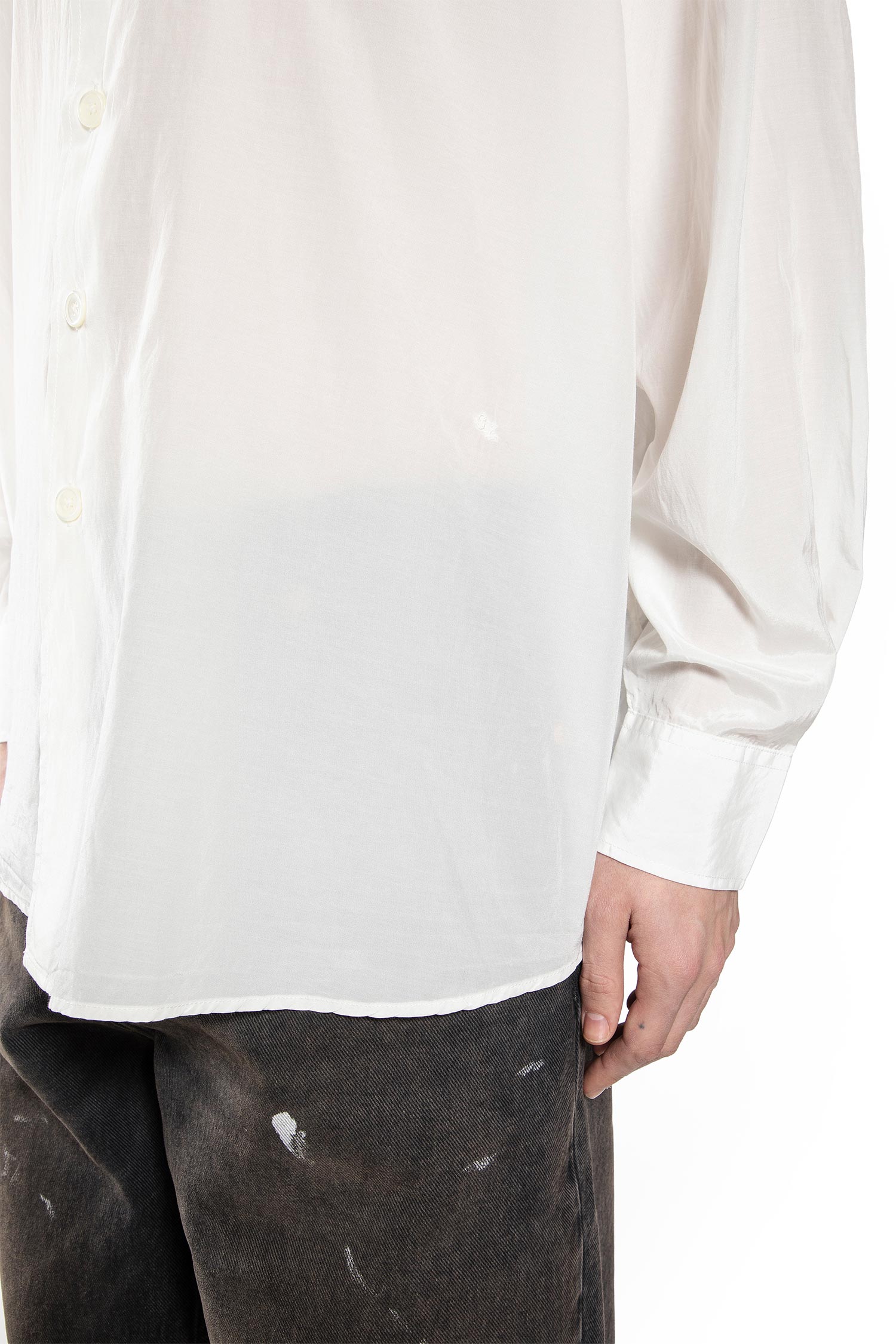 Our Legacy Borrowed Shirt in white reflects the brand's ongoing dialogue with familiarity, where everyday garments are revisited through proportion, restraint, and quiet intention. A study in continuity, memory, and the idea of clothing as something lived in rather than designed.