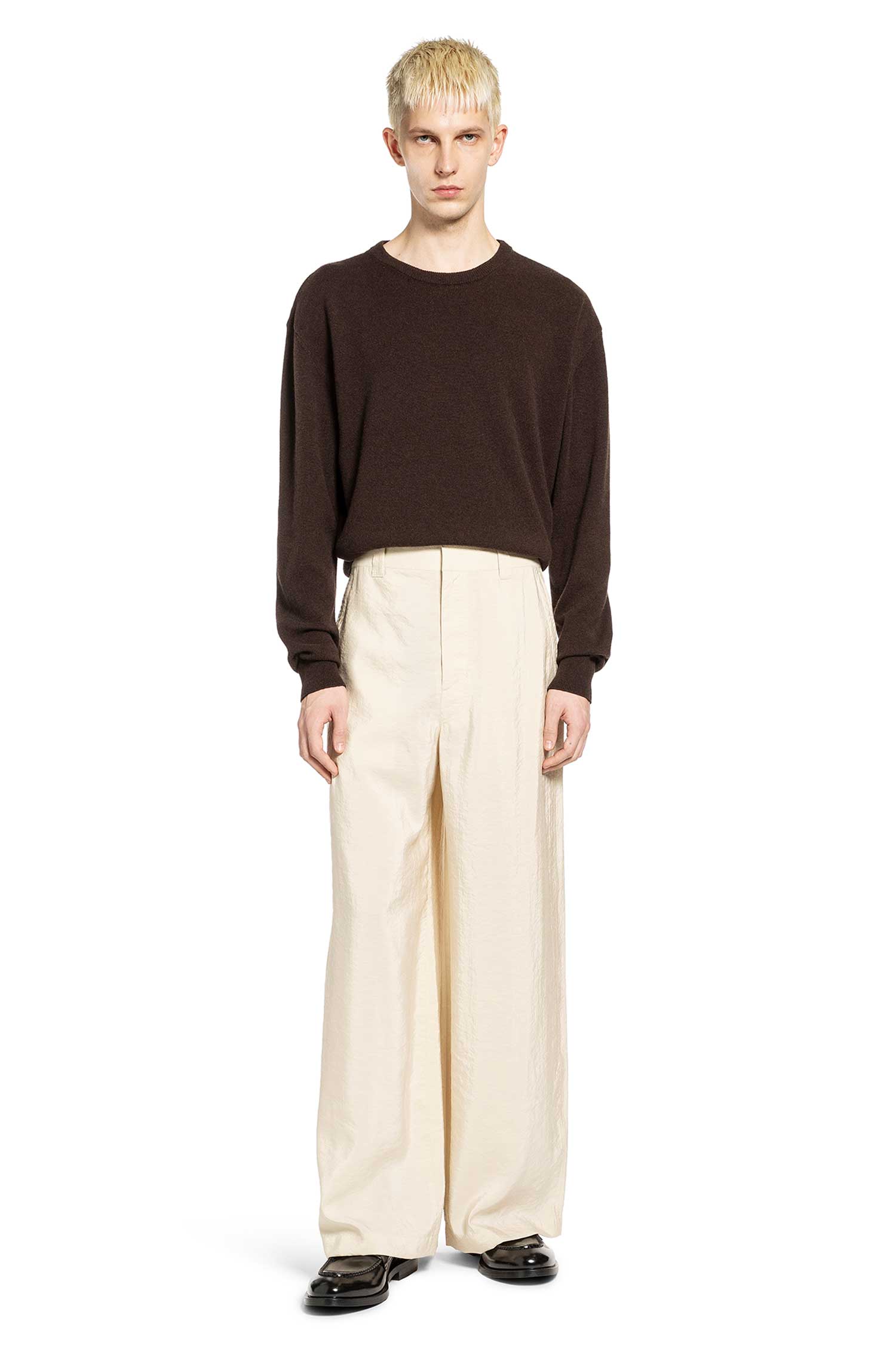 The Lemaire Straight Tailored Pants in Dry Silk reflect the brand's focus on material integrity and refined proportions. Their relaxed, floor-length silhouette embodies Lemaire's understated, timeless approach to modern tailoring.