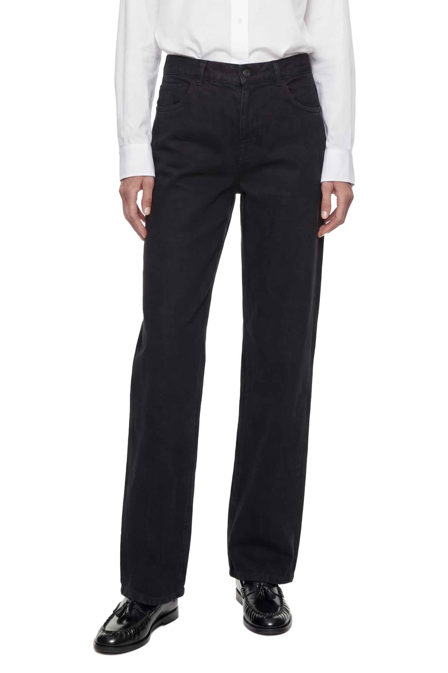 Defined by clean lines and precise construction, these mid-rise jeans embody The Row s understated approach to denim. Crafted from structured cotton denim, they fall into a straight-leg silhouette enhanced by tonal topstitching that subtly refines the classic five-pocket design. A timeless foundation piece designed for effortless, everyday wear.