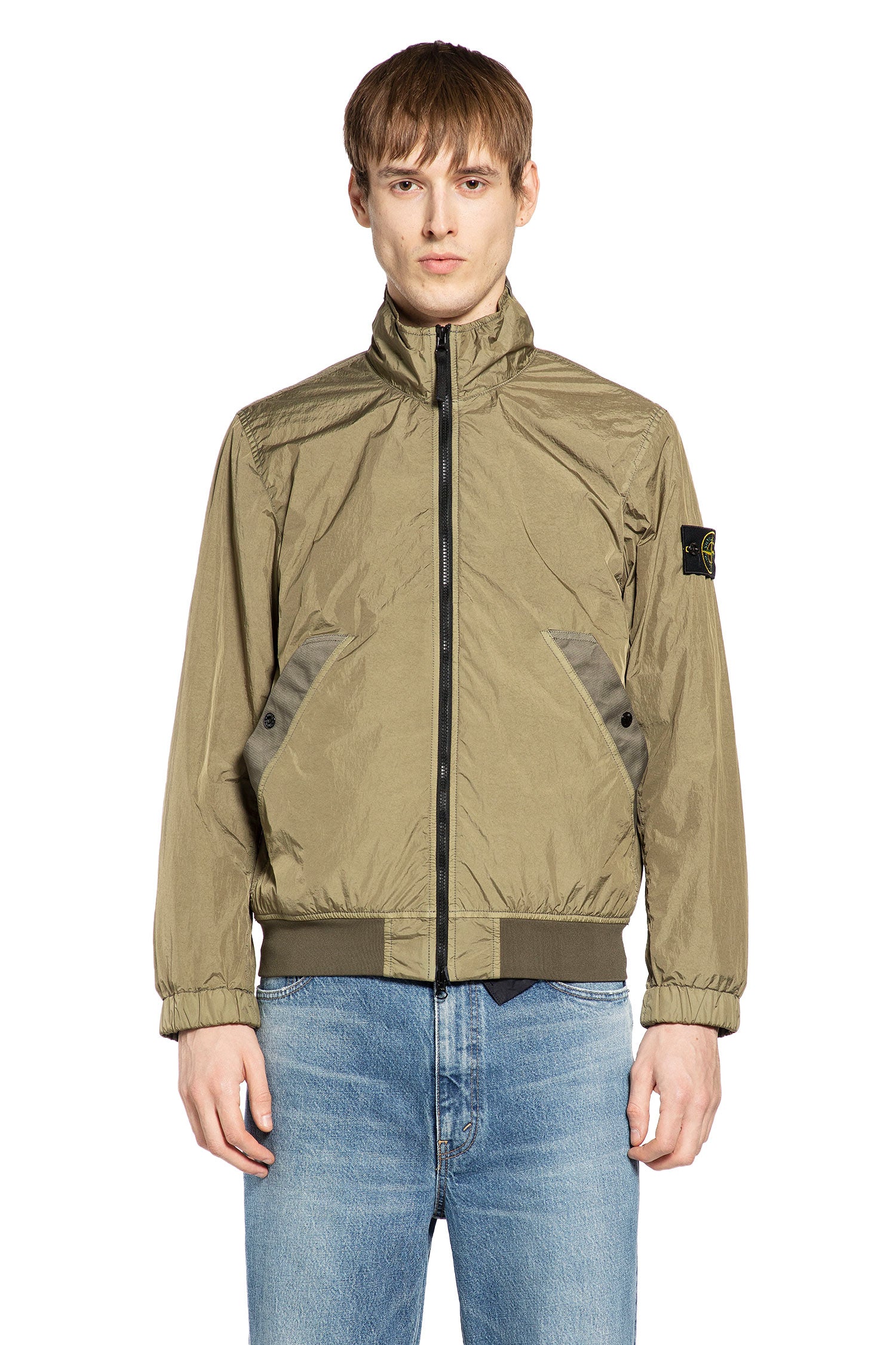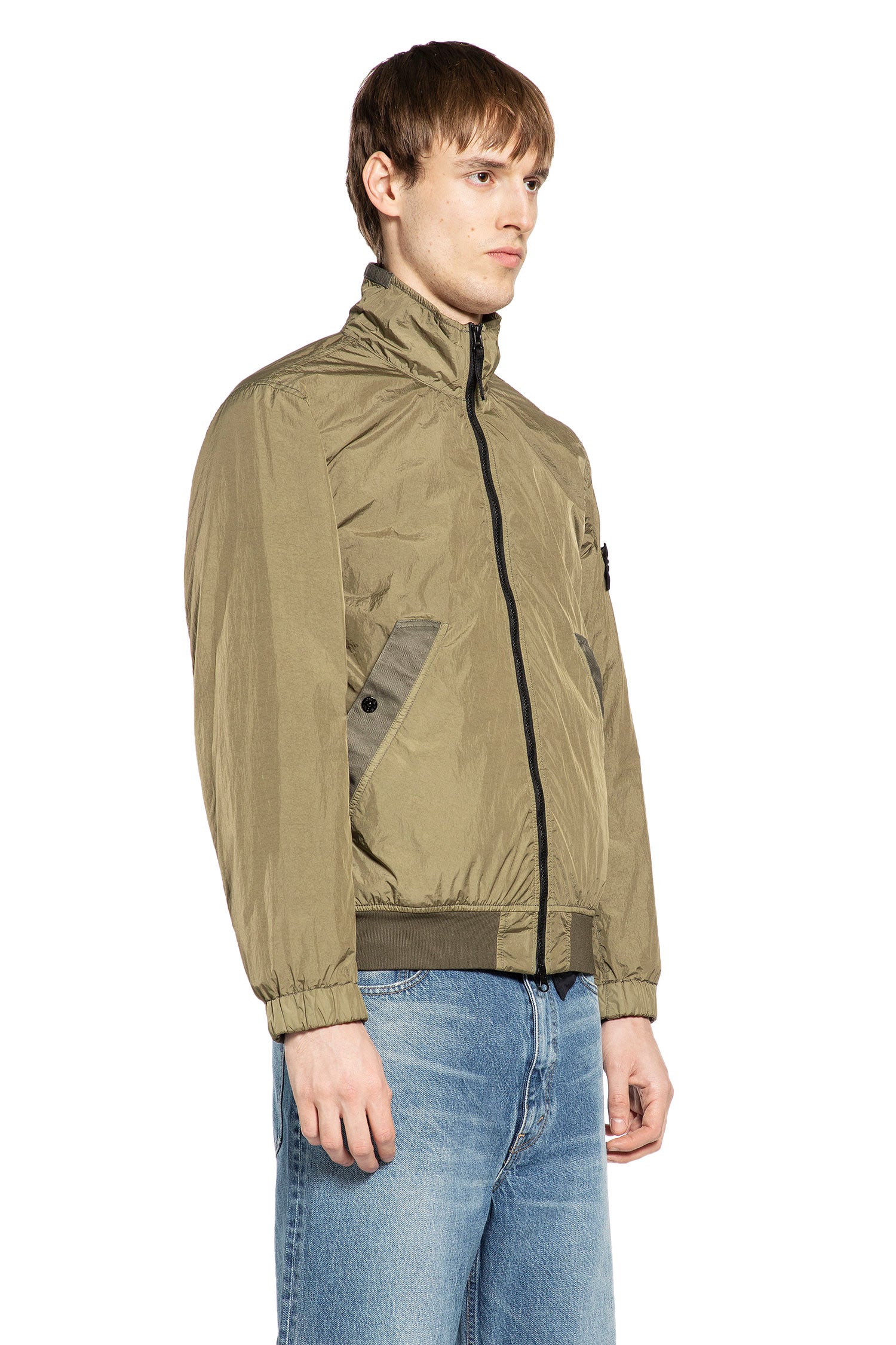 This military green outerwear piece merges technical innovation with a utilitarian, modern aesthetic. Crafted in resin-coated recycled nylon, it balances weather-resistant performance with a relaxed, contemporary silhouette and refined functional detailing.
