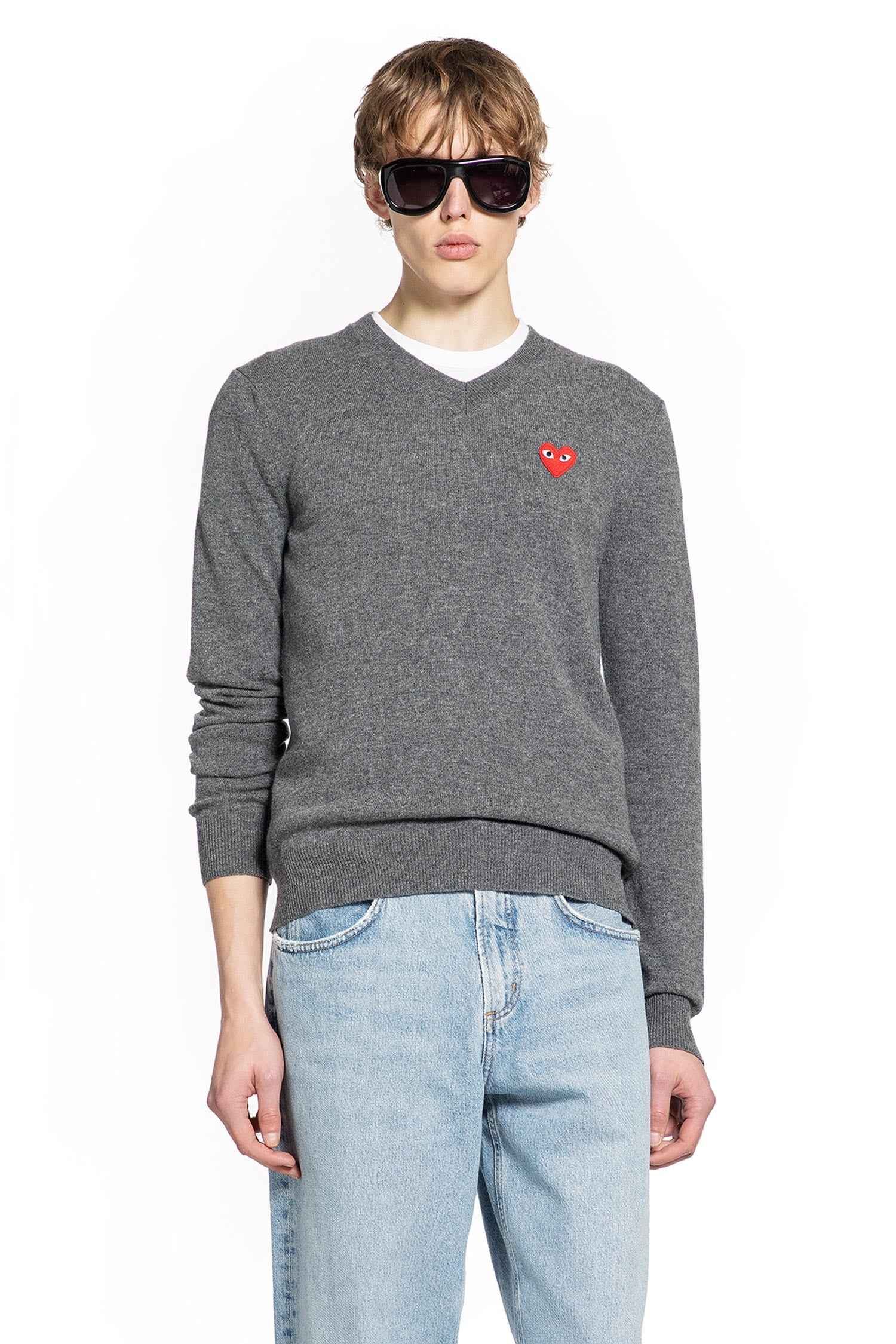 Comme des Garçons Play fuses playful iconography with meticulous craftsmanship. The heart motif transforms a classic wool sweater into a quietly distinctive statement, balancing conceptual design with understated luxury.
