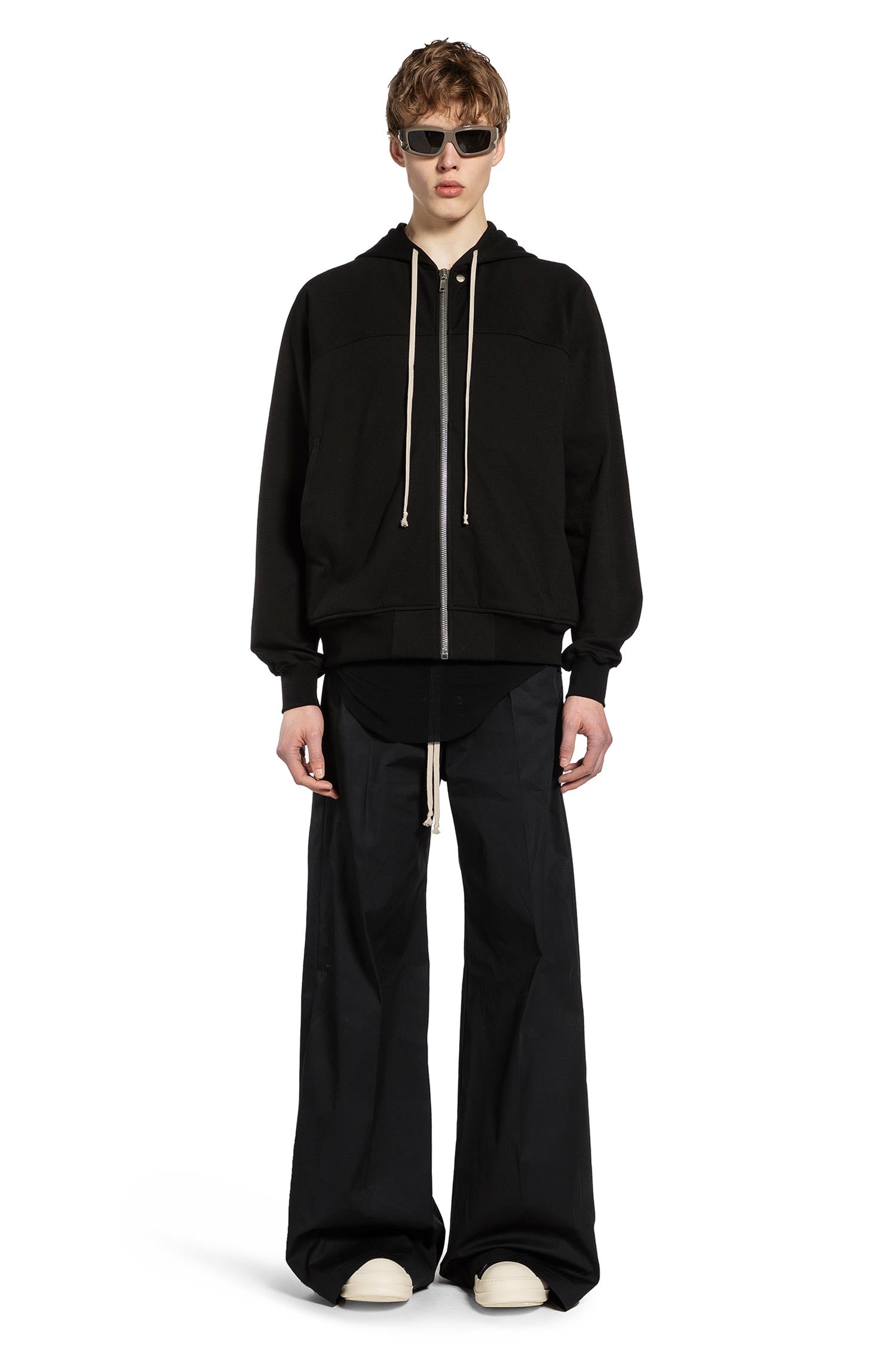 Temple Winbreaker in heavy jerseyThe Temple Winbreaker redefines casual form through weight and proportion, where dropped shoulders and sculpted lines create a quiet, authoritative presence. Subtle gestures—like engraved hardware and structured hems—anchor the piece in Rick Owens disciplined, considered approach.blackhood with drawstringszip closurefront engraved logo rivetfront pocketsdropped shouldersribbed hem and cuffs