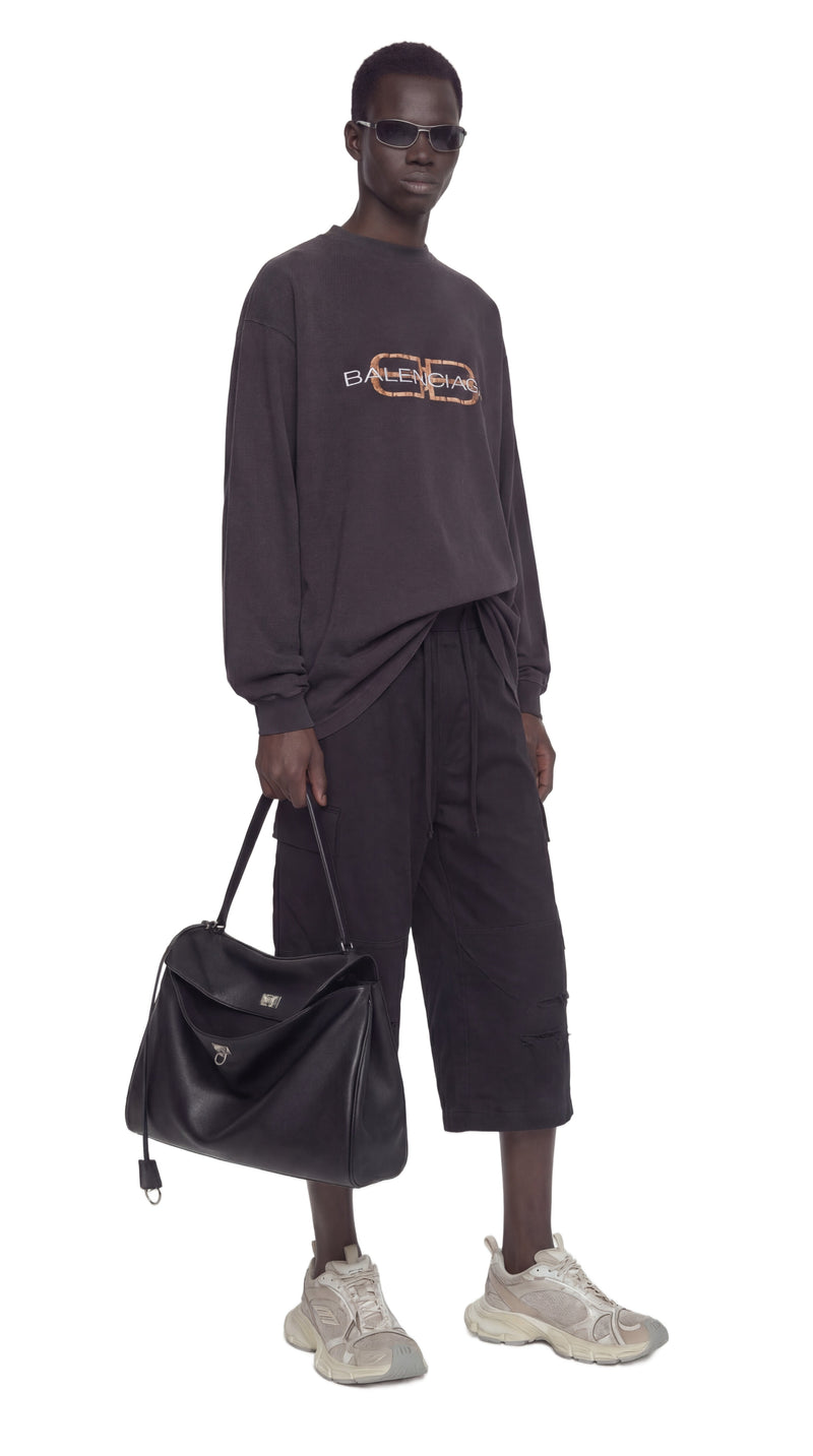 Casual con actitud. Esta camiseta extragrande lleva una frescura sin esfuerzo, combinando proporciones relajadas con un toque de firma audaz.