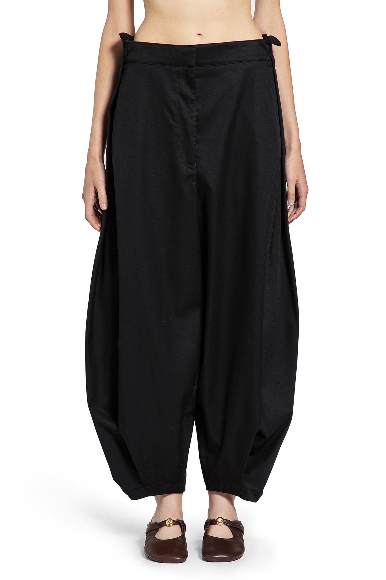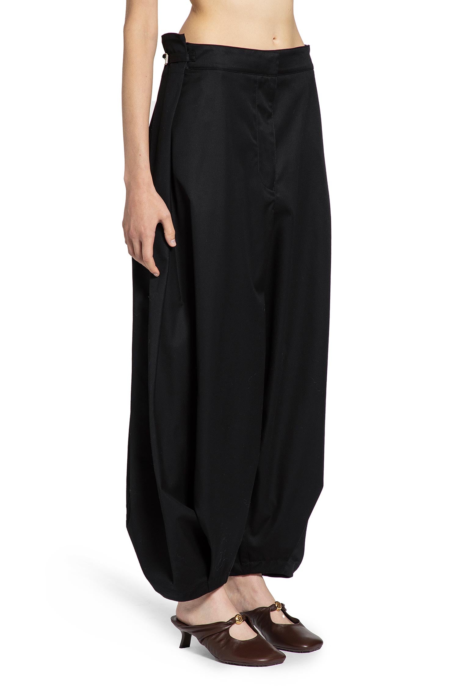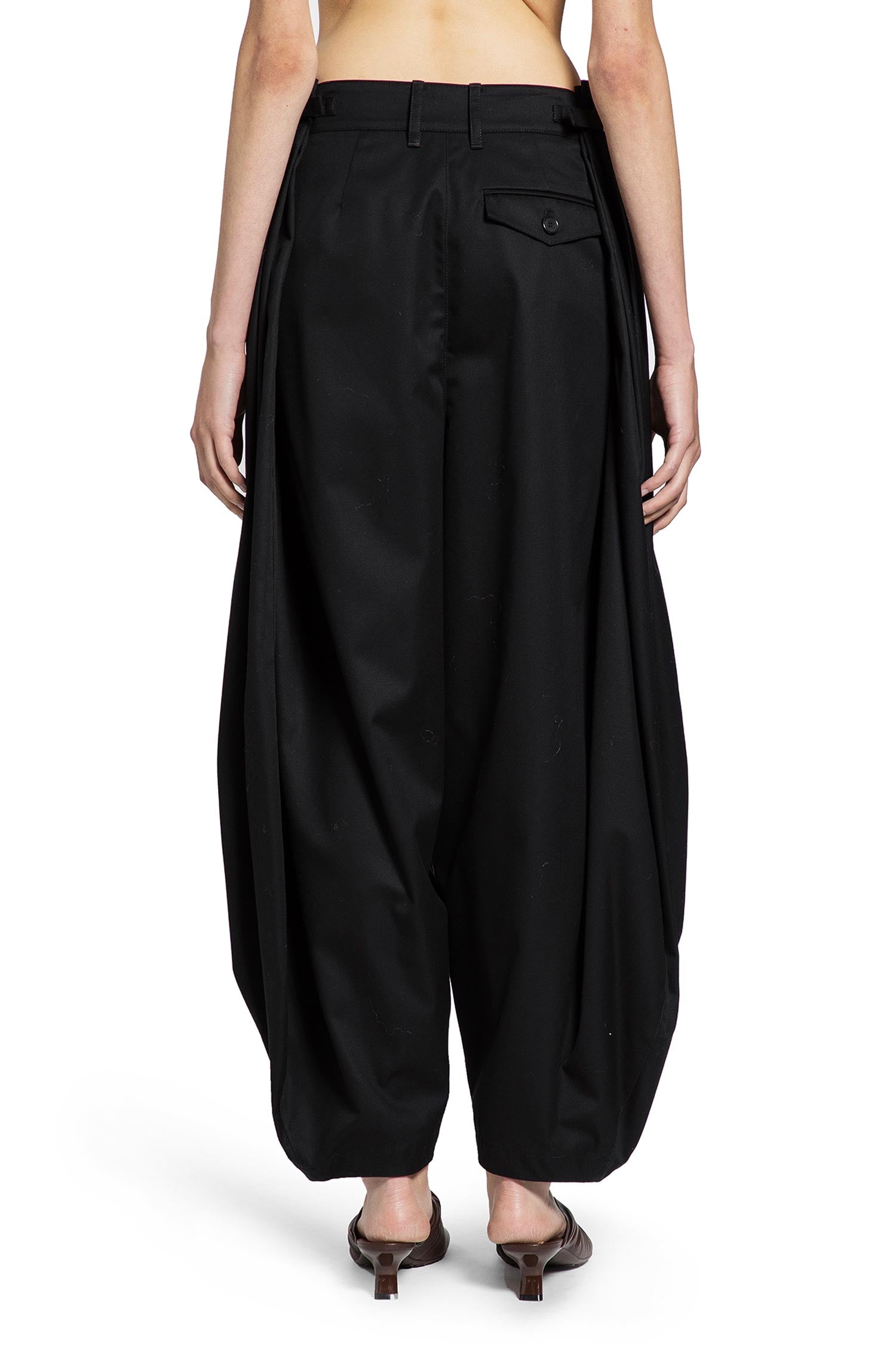draped trousers in cotton and silk