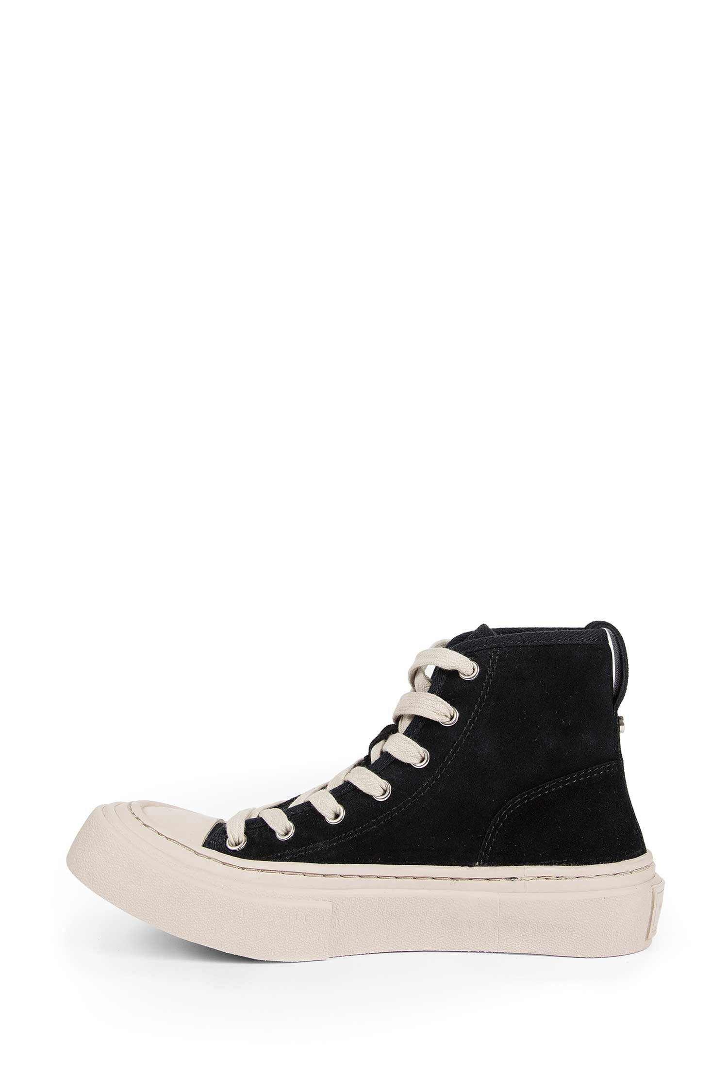 Ann Demeulemeester's Sarin Mid-Top Sneakers distill the house's urban poetics into sculptural form. Suede surfaces and signature rivet details embody its tensioned, darkly refined minimalism.