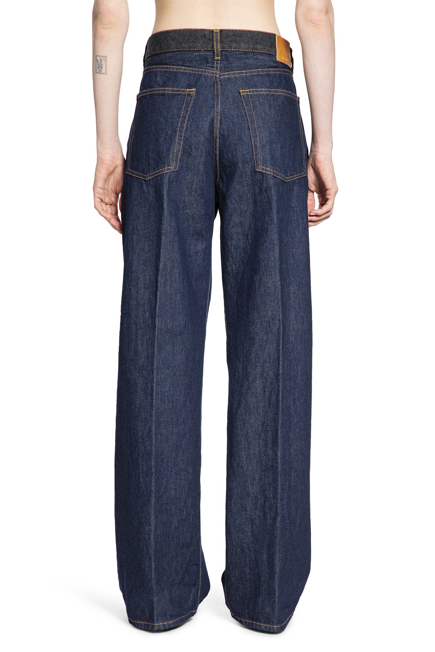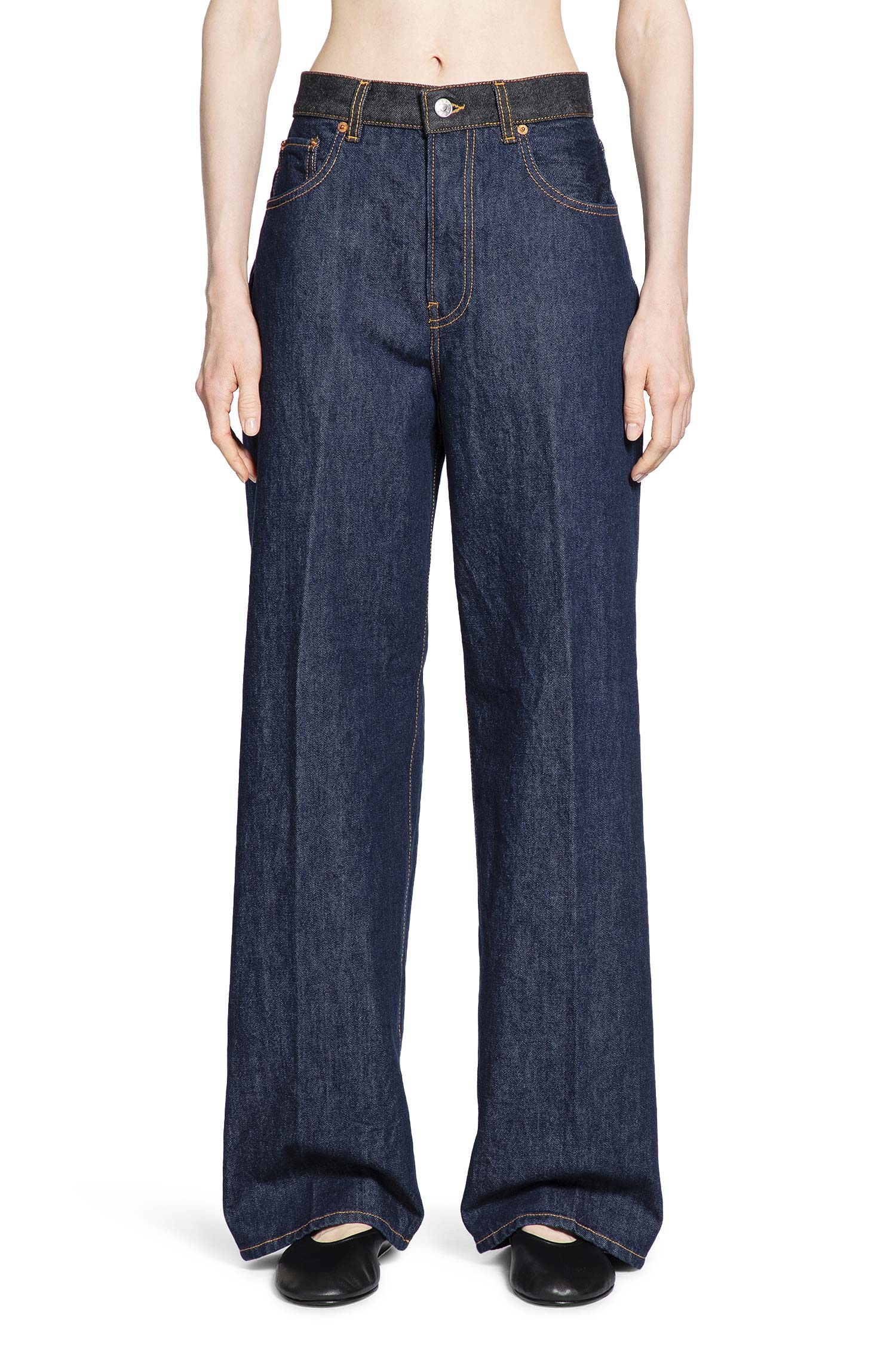 The 6397 woman blue jeans are expertly made in Italy from firm cotton denim, offering a wide fit with a striking contrast waistband that sets them apart. Clean side seams shape a relaxed, modern silhouette, while the smooth, unembellished back keeps the look versatile and easy to style. The vivid blue color brings a fresh, fashion-forward edge, and the premium cotton ensures comfort, breathability, and lasting structure. Finished with a secure button closure for a confident fit, these jeans are a timeless staple that elevate any wardrobe with their blend of modern design and classic craftsmanship.