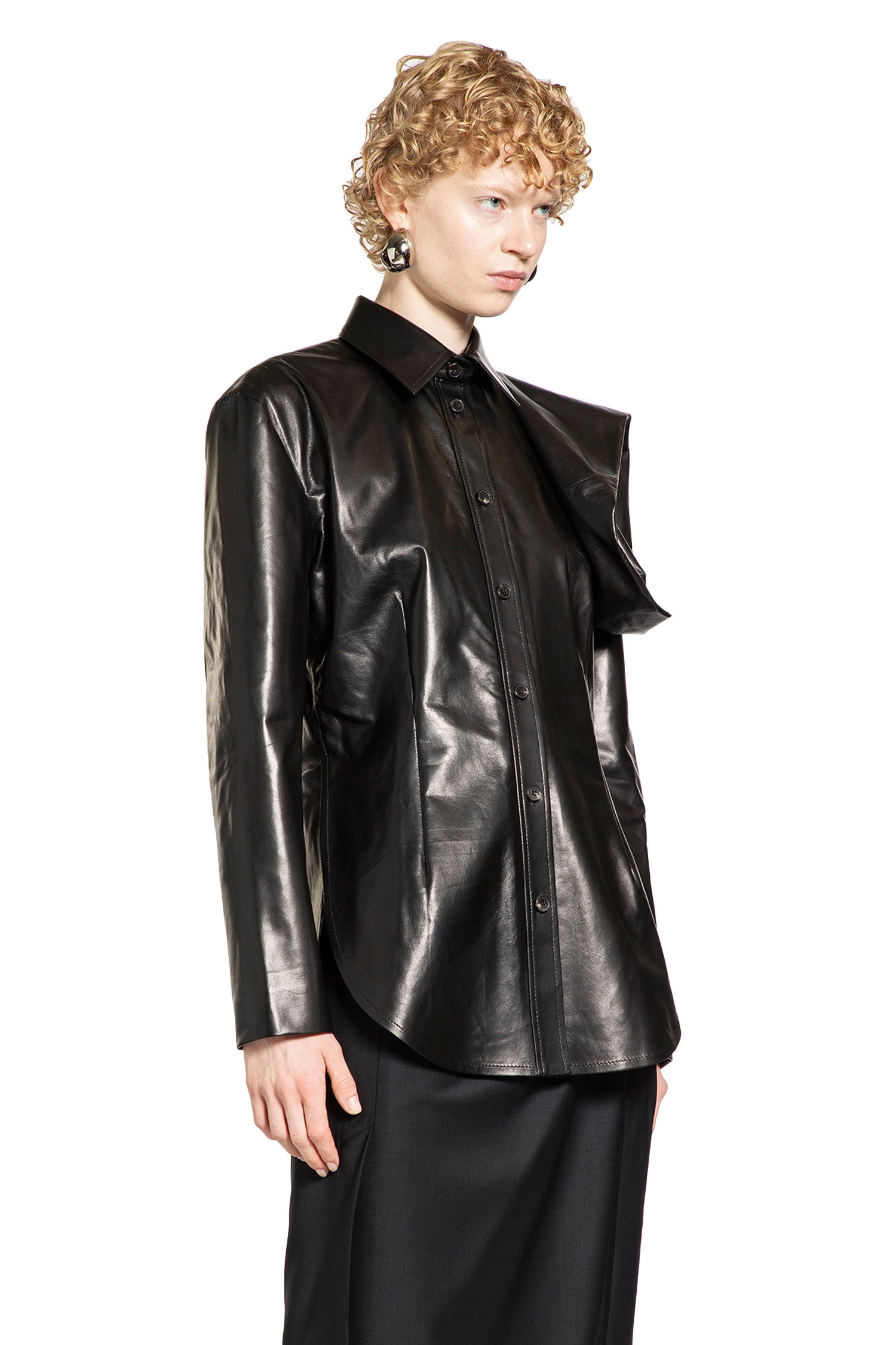 leather shirt with floral detail