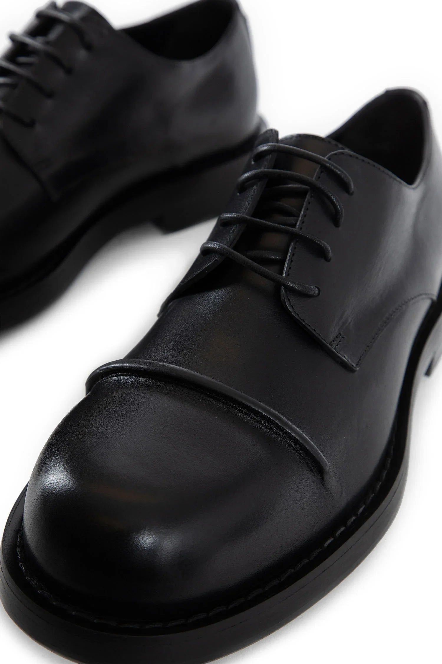 - ▪ Ann Demeulemeester shoes embody the essence of luxury and comfort. The generously wide fit is a design choice aimed at ensuring a comfortable wear. For those who prefer a snugger fit, we recommend using an insole. Crafted from the highest quality leather, it is natural for the shoes to feel stiff initially. By wearing and walking in them, they will perfectly mold to the shape of your feet, offering unparalleled comfort.