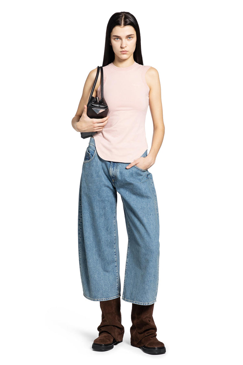 ピンクのコットンジャージータンクトップが、The Atticoによる高められた快適さと都会的な官能性の視点を通して再構築されています。それはミニマリズムと主張の間に微妙な緊張感を持ち、ワードローブの必需品を形状、動き、控えめな魅力の研究に変えます。