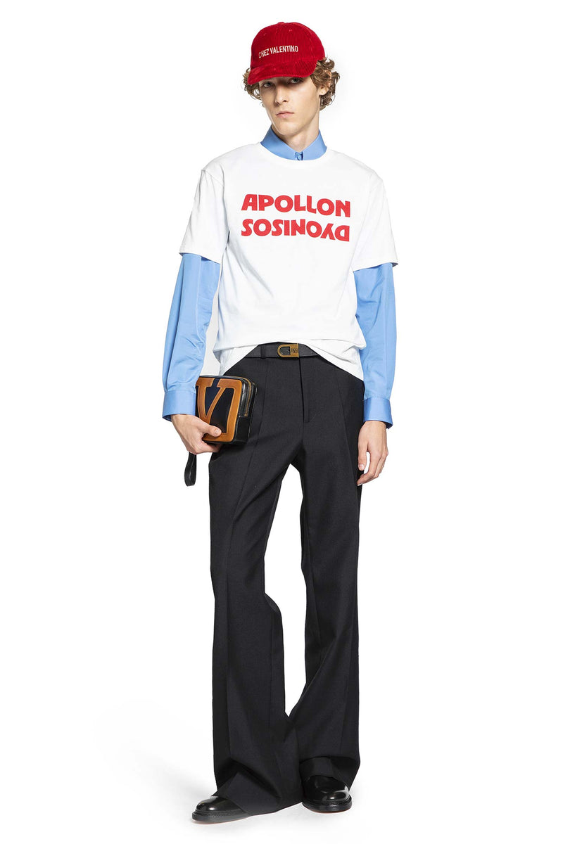 VALENTINO Apollon Dyonisos Tシャツを体験してください。イタリアで専門的に作られたプレミアムコットンジャージーから作られ、形を保ちながらもシャープで柔らかな手触りです。フロントのアイコニックなApollon/Dyonisosプリントが大胆で芸術的なエッジを加え、クラシックなクルーネックとショートスリーブが、日中から夜までシームレスに移行するタイムレスなシルエットを提供します。純白の色はどんなルックも引き立て、無限のスタイリングオプションのために簡単に組み合わせたりレイヤーしたりできます。ストレートヘムとリラックスフィットで、このTシャツはモダンなイタリアンラグジュアリーの本質を体現しながら、手間のない洗練と快適さを提供します。