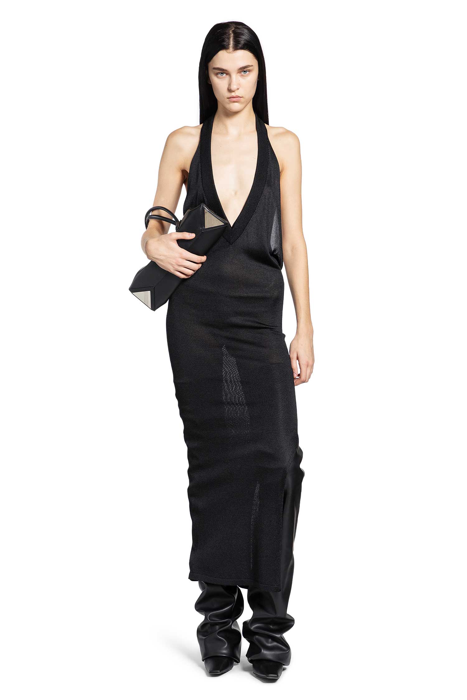 A black sheer viscose knit reinterpreted through The Attico s signature fusion of sensuality and urban edge. Minimal yet provocative, it embodies the brand s tension between elegance and rebellion. An elevated, nocturnal statement piece that transforms a classic midi into modern glamour.