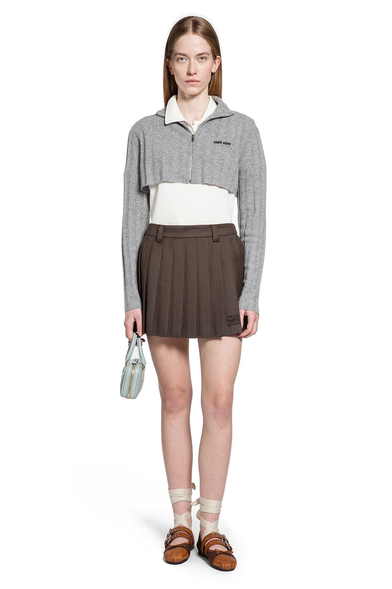This cropped ribbed knit cardigan embodies Miu Miu's understated sensibility. Soft regenerated wool and cashmere, archival-inspired proportions, and a subtle logo patch blend the House's heritage with contemporary innovation.