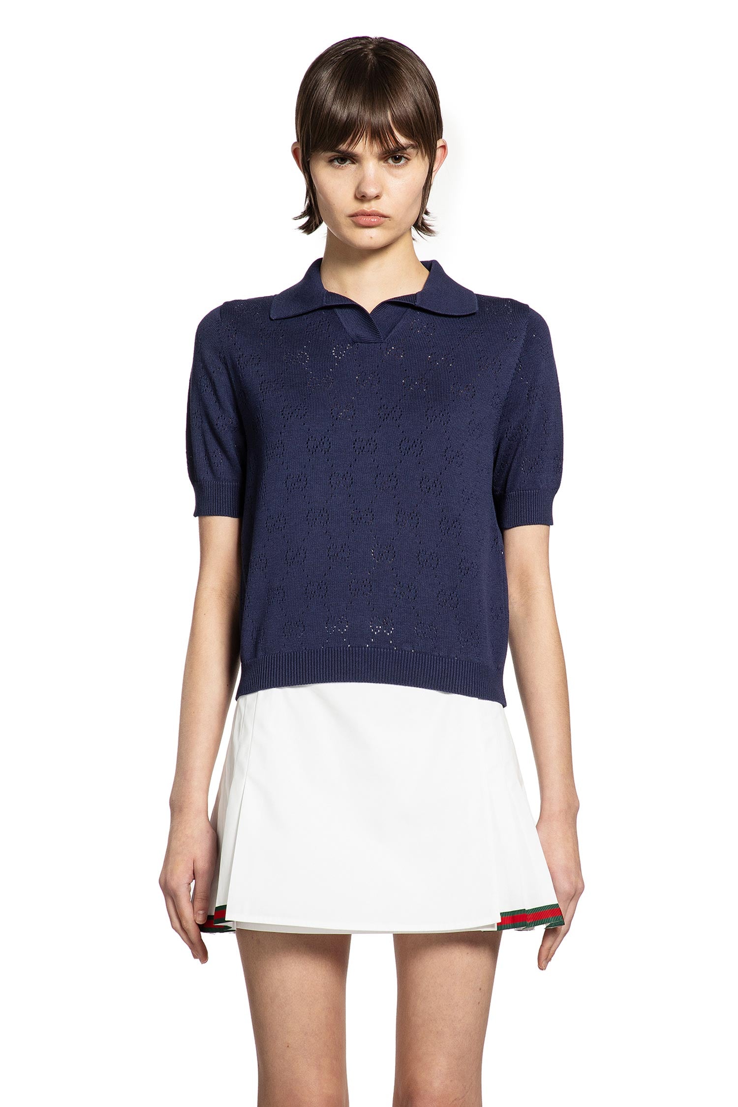 gg pointelle cotton silk polo shirt