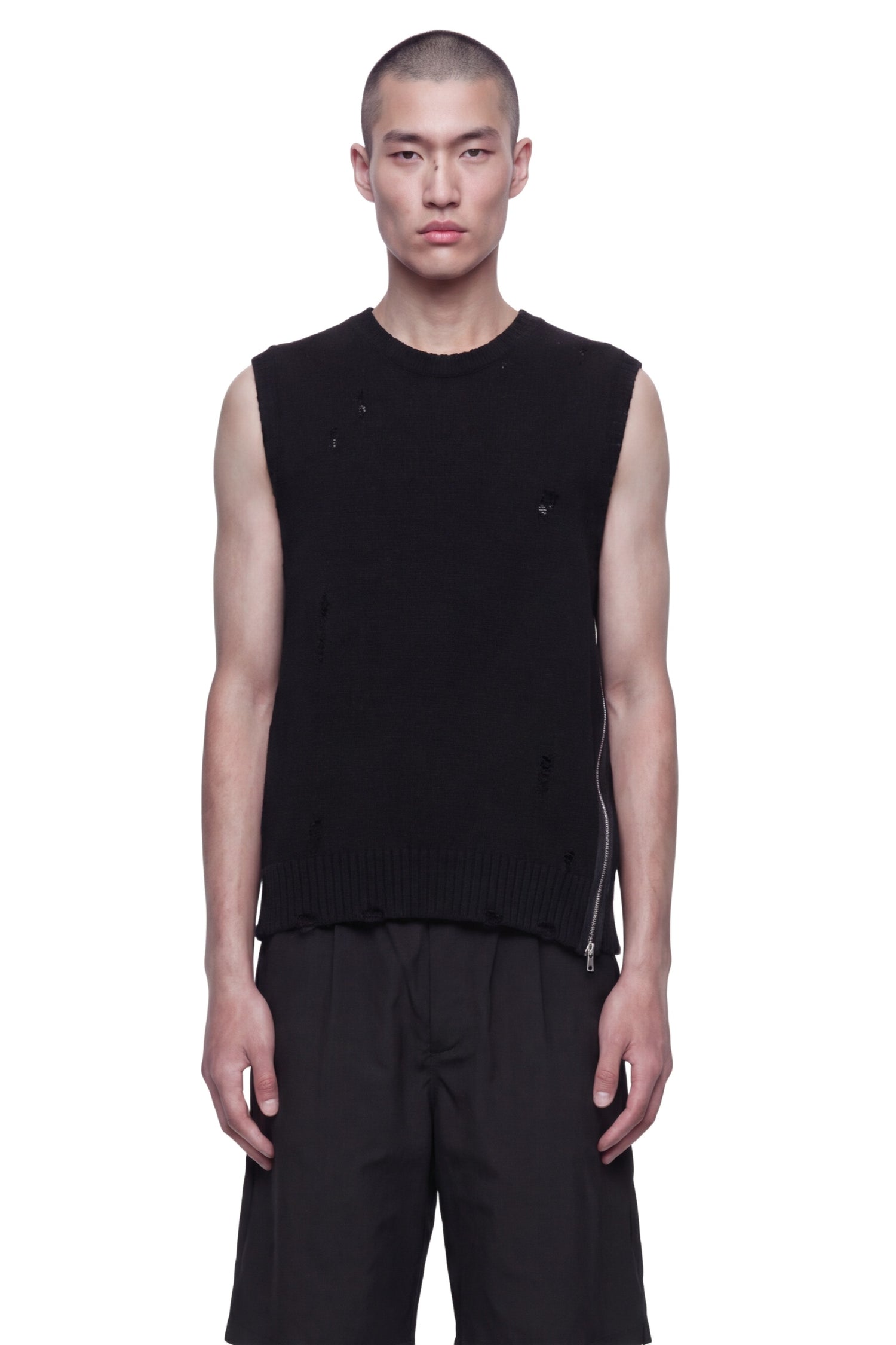distressed knitted vest