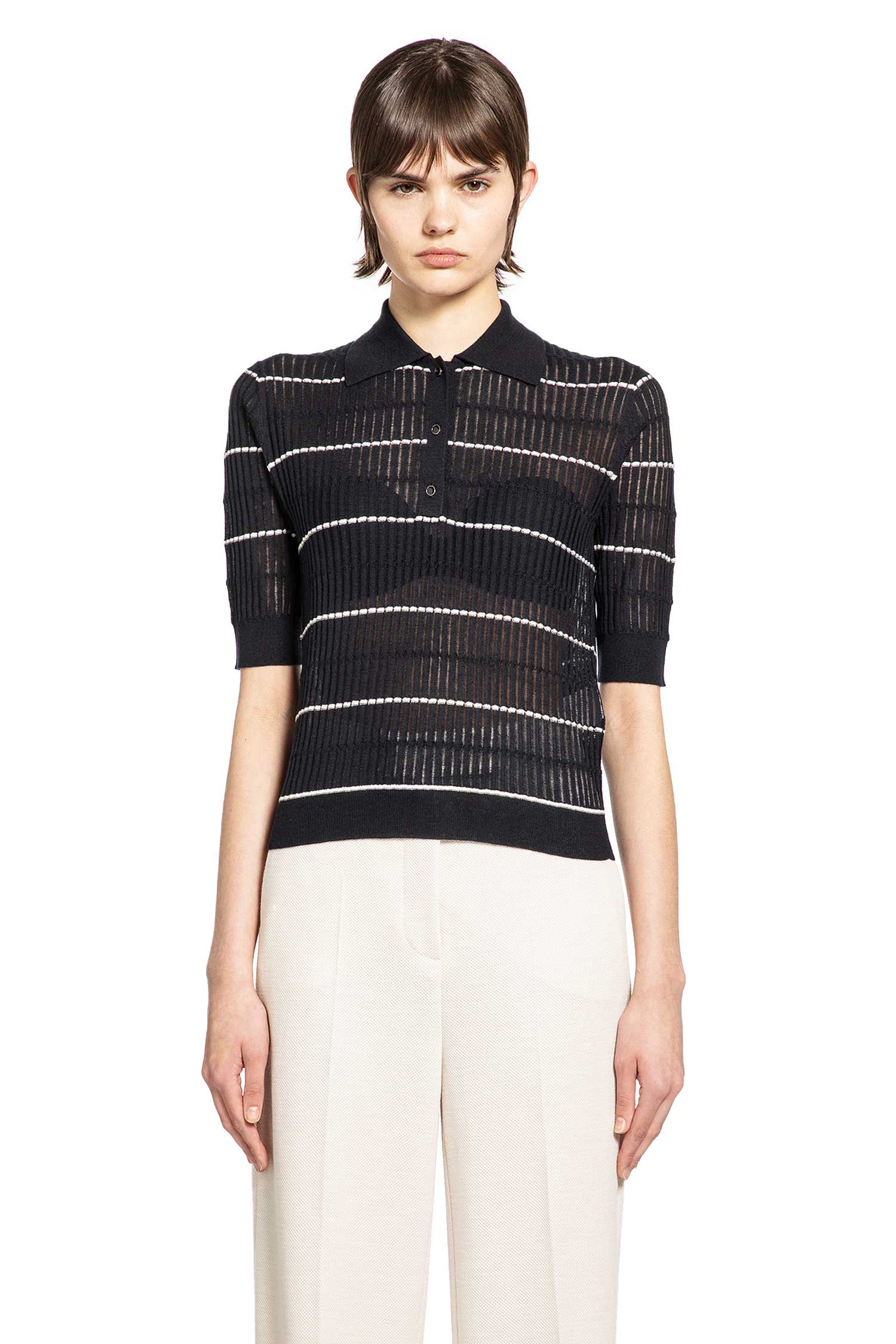 Max Mara のジャンパーは、ワードローブのクラシックをクリーンなラインと手間いらずの洗練さの研究に凝縮し、ハウスのタイムレスでモダンな感性を反映しています。ネイビー