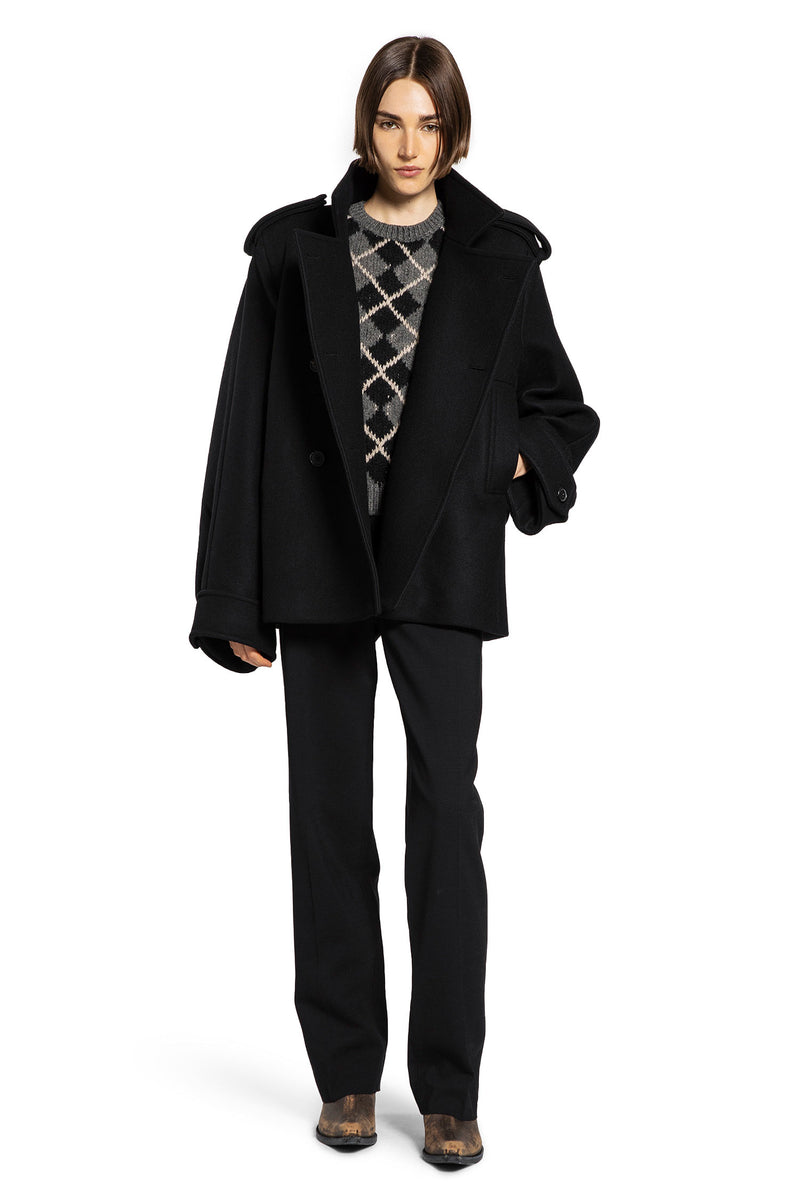 La giacca in lana nera KHAITE è realizzata negli Stati Uniti con lana di alta qualità per un look strutturato e moderno. La vestibilità boxy è progettata per essere indossata in modo ampio, offrendo comfort e un tocco di moda all'avanguardia, mentre il davanti pulito e le cuciture laterali sottili mettono in risalto la texture naturale del tessuto e le linee architettoniche. Il retro mantiene la silhouette nitida e raffinata, e una chiusura senza cuciture assicura una finitura elegante. Questa giacca è perfetta per uno stile versatile, rendendola un pezzo distintivo per chi apprezza sia la sofisticazione che lo stile senza sforzo.